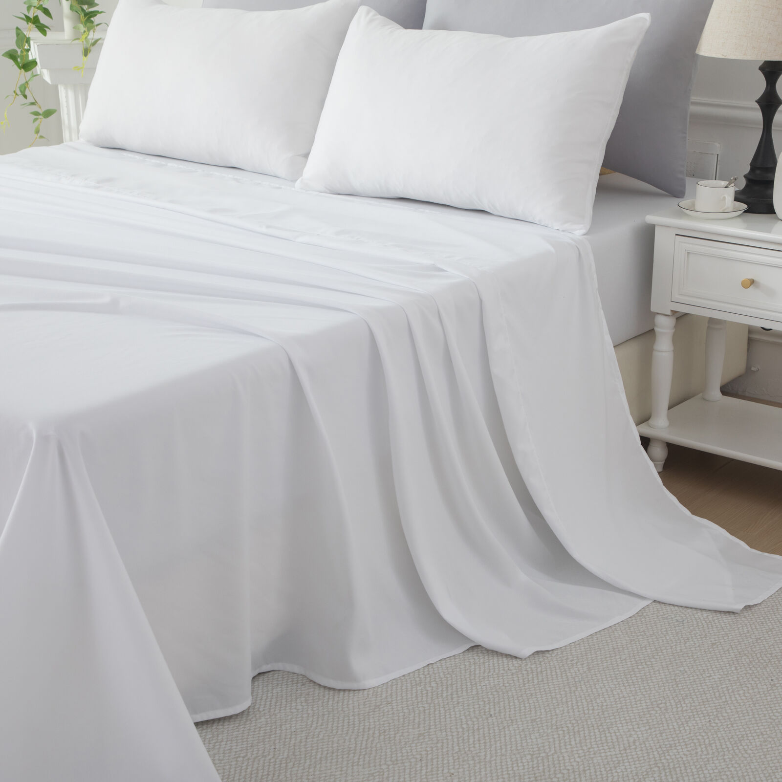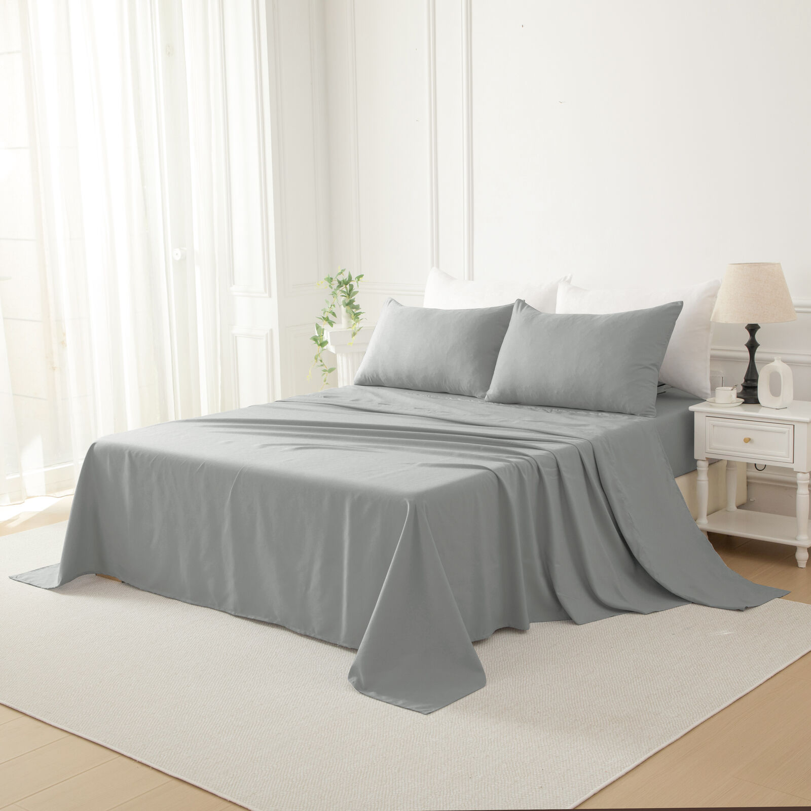 100% Cotton Twill 4 Piece Bed Sheet Set Flat Sheet Fitted Sheet Pillowcases for Single/King Single/Double/Queen/King/Super King