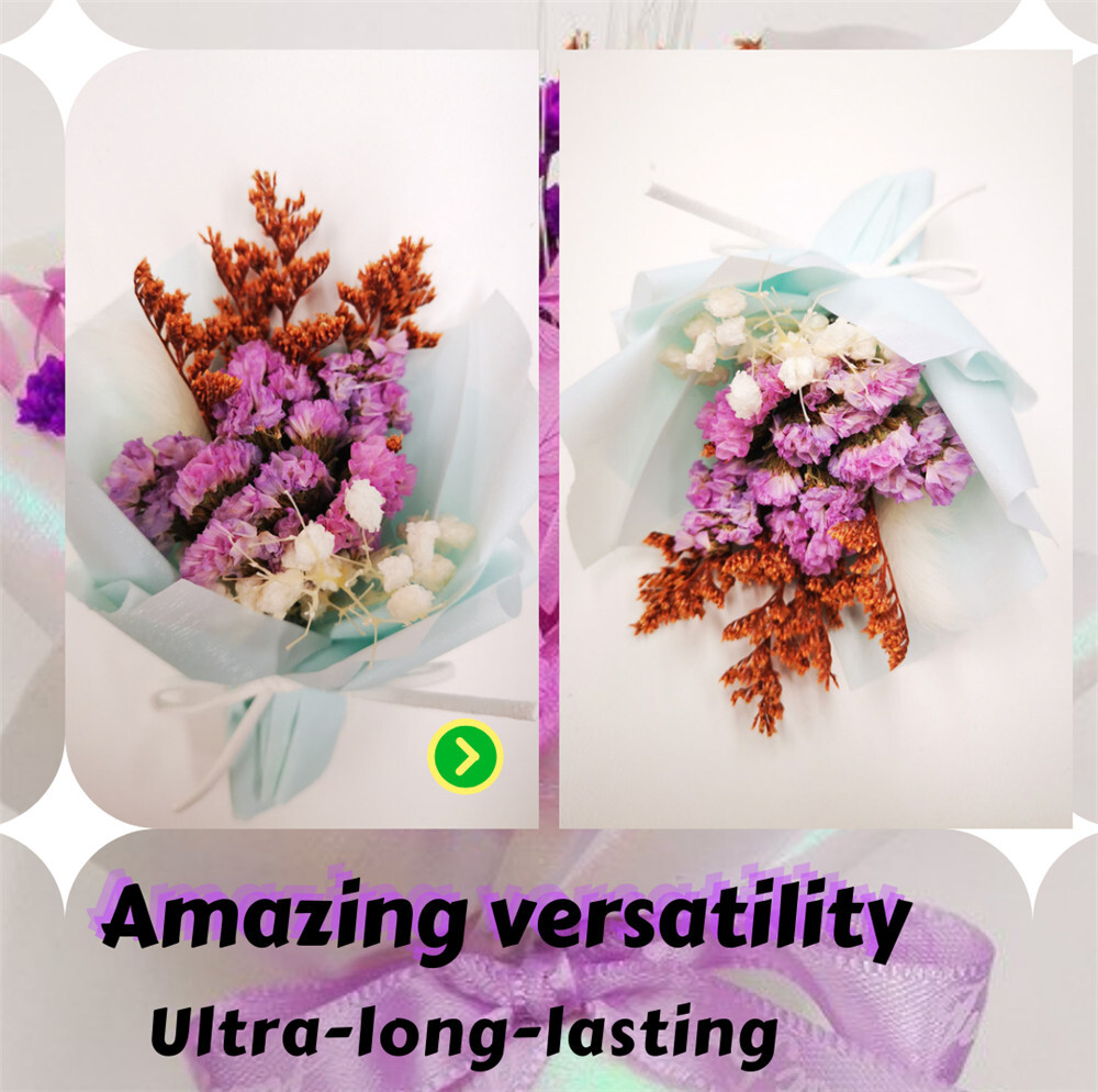 This is a DIY package for 5 adorable bouquets. The package includes dried and persevered flowers and wrapping materials.