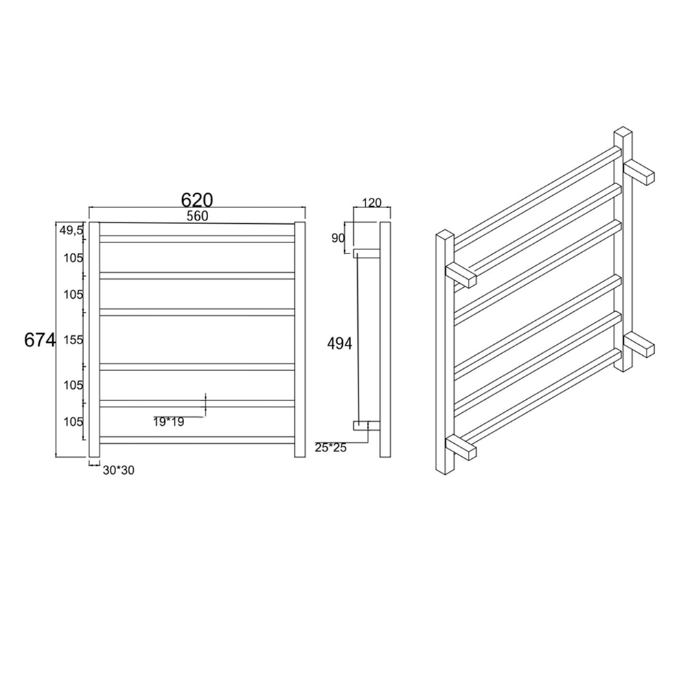 Electric Heated Towel Rack Wall Mounted Towel Rail 4 Bars Sq