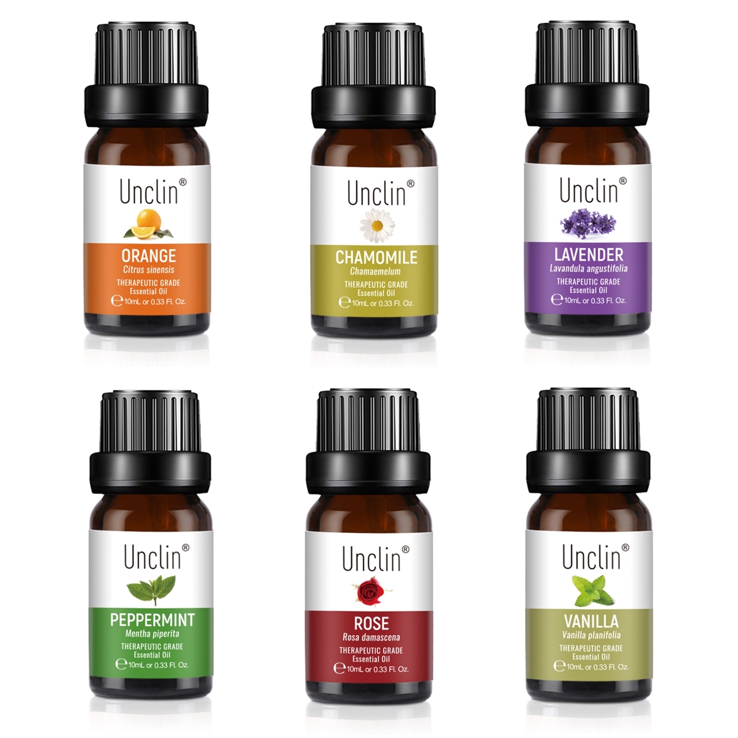 • UNCLIN Essential Oil Set 100% Pure Natural Aromatherapy 6 Pack 10ml Chamomile Lavender Orange Peppermint Rose Vanilla