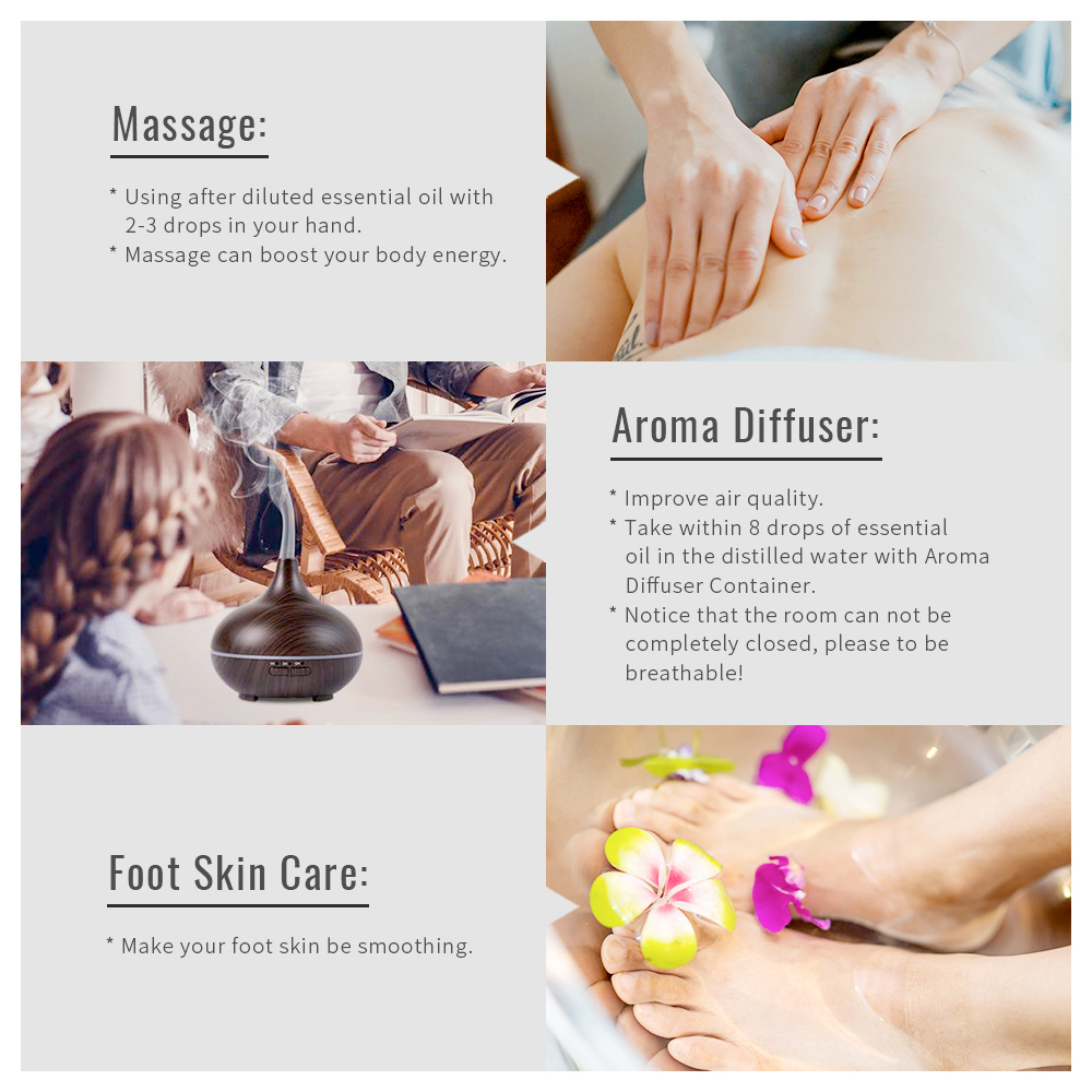 Take within 8 drops of essential oil in the distilled water with Aroma Diffuser Container.