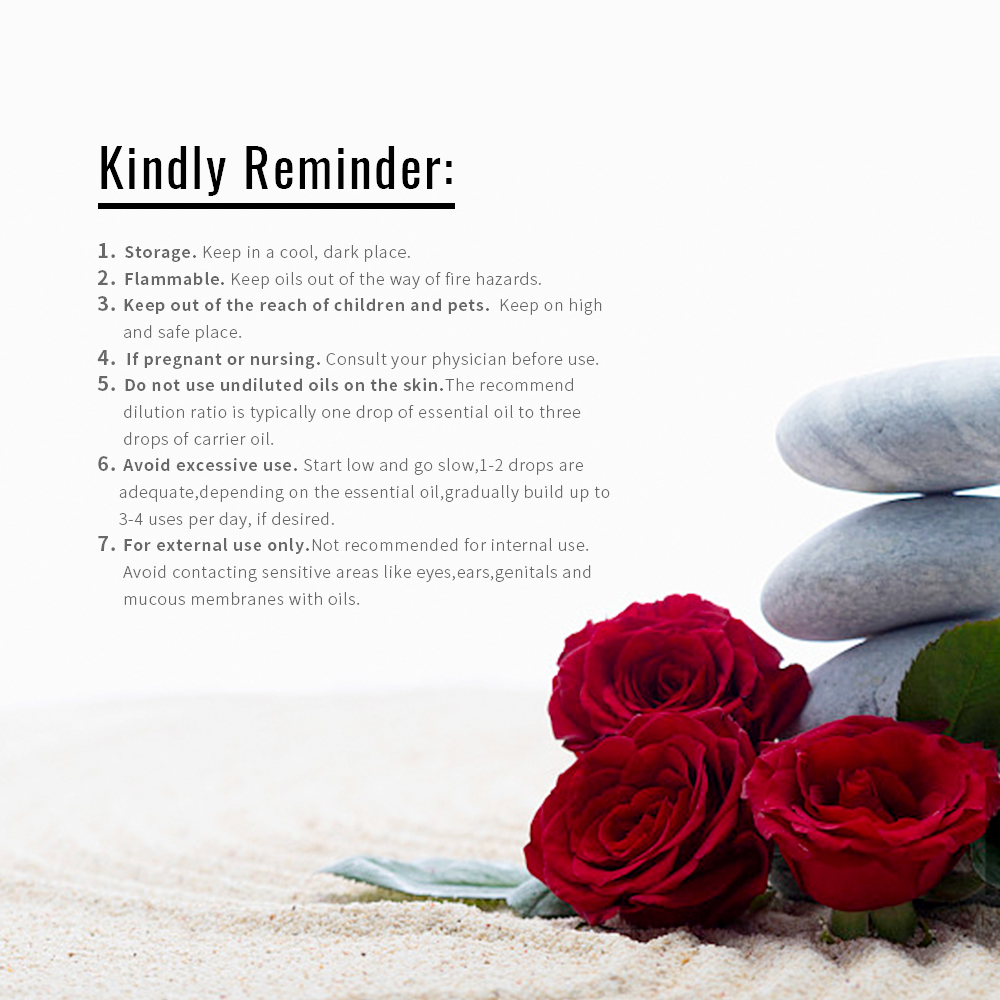 7 For external use only.Not recommended for internal use. Avoid contacting sensitive areas like eyes,ears,genitals and mucous membranes with oils.