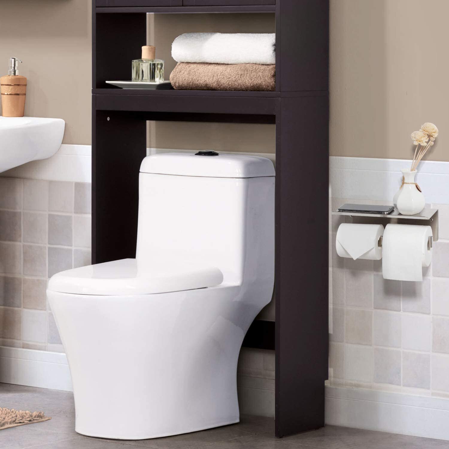 • Double Toilet Paper Holder Bathroom Tissue Roll Holder with Shelf Cover Chrome